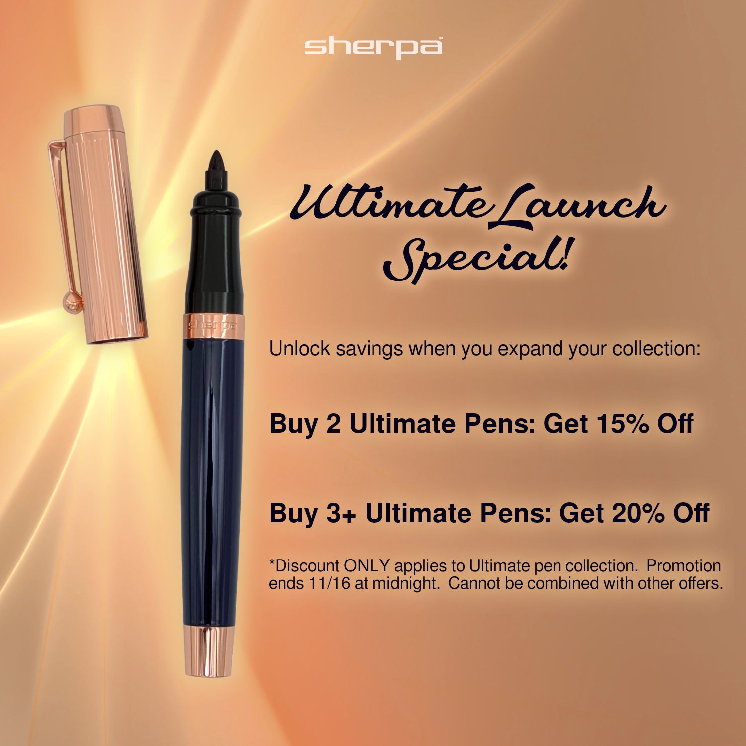 Experience the pinnacle of writing with the Sherpa Ultimate Collection. Fusing nearly two decades of iconic design with superior modern ergonomics, this is writing perfection, refined.